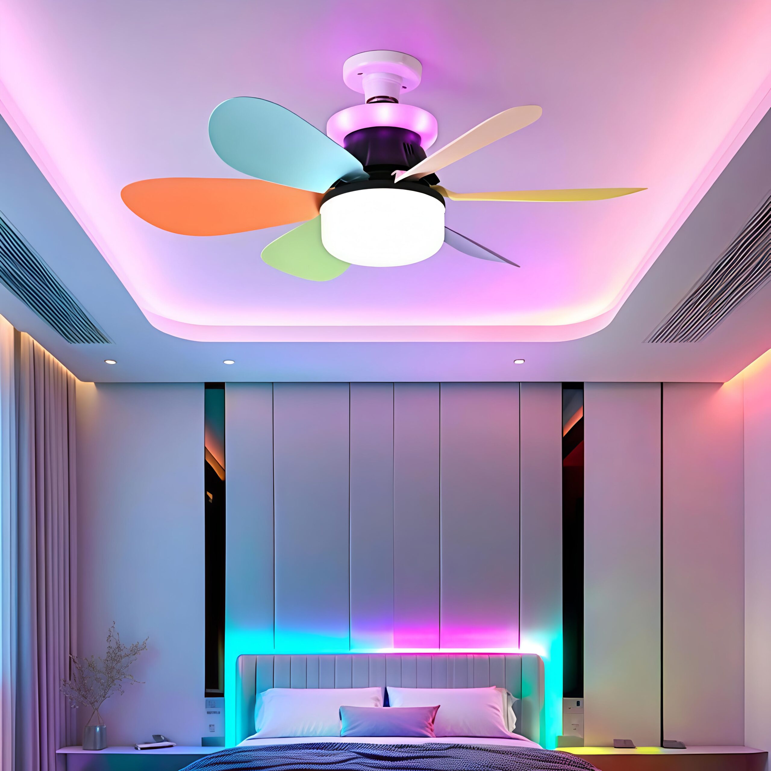 Use remote or wall switch to adjust fan speed, light brightness, and color temperature. Some models support app control for scheduling and scenes.